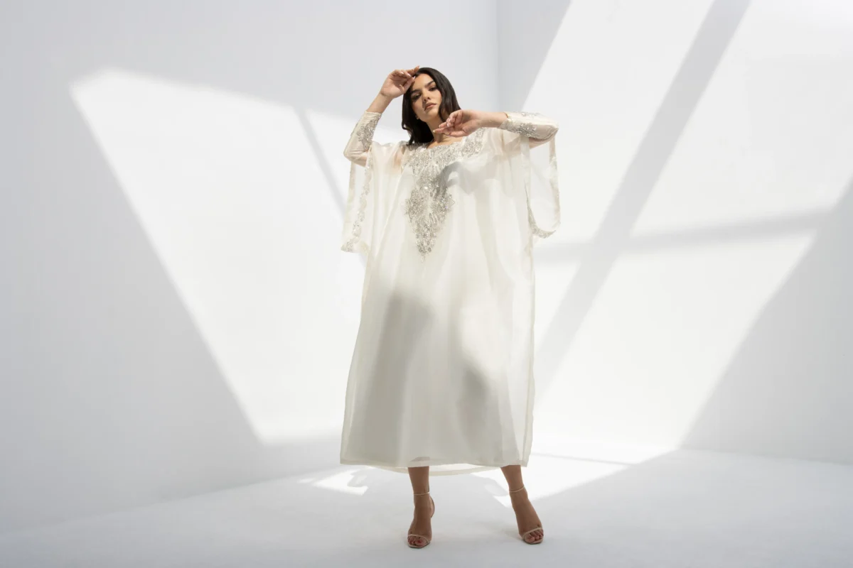 ثوب أنثوي راقٍ بتصميم أنيق وفاخر