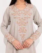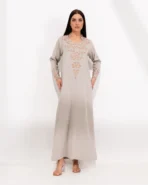 تطريز متقن يزين منطقة الصدر والأكمام بلمسة أنثوية فخمة.